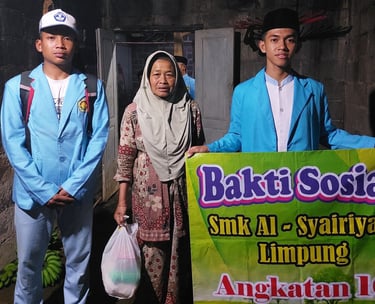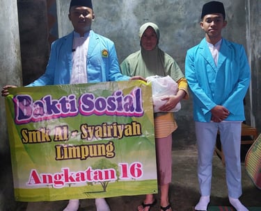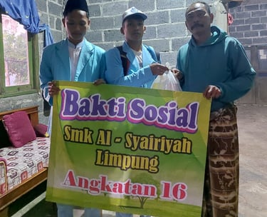 Sebagai ungkapan syukur atas kelulusan, seluruh siswa kelas XII SMK Al Sya’iriyah Limpung menggelar bakti sosial dengan membagikan sembako dan membersihkan fasilitas umum. Kegiatan yang berlangsung pada Rabu 7 mei 2025 ini melibatkan puluhan lulusan didampingi guru dan staf sekolah. Paket sembako berisi bahan pokok seperti beras, minyak, dan telur dibagikan kepada warga kurang mampu di sekitar lingkungan sekolah dan dibagi diarea pegunungan yang jauh dari keramaian. Tepatnya di desa Pacet Kecamatan Reban Kabupaten Batang. "Ini bentuk syukur sekaligus ajang melatih kepedulian sosial siswa, sekaligus bagian dari penguatan etika dan kesantunan dalam melakukan segala hal termasuk dalam meluapkan ekspresi kegembiraan merayakan kelulusan. " ujar waka kesiswaan, Muhamad Dwi Saptono.